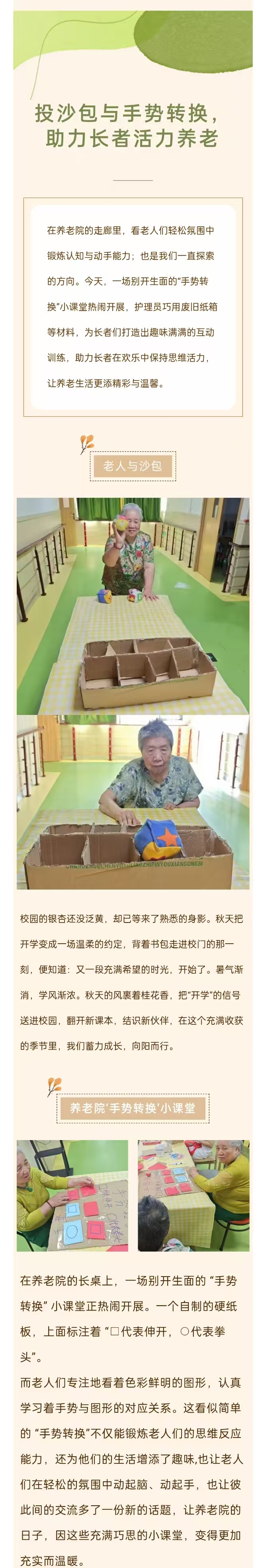 【颐和医养】投沙包与手势转换,助力长者活力养老