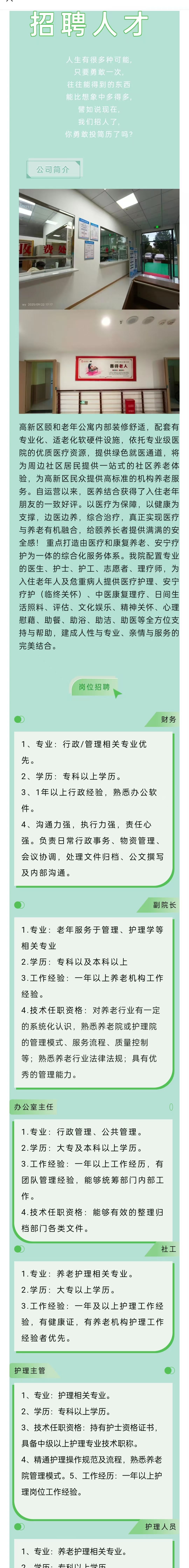 【颐和医养】来看!高新区颐和老年公寓多岗招聘啦